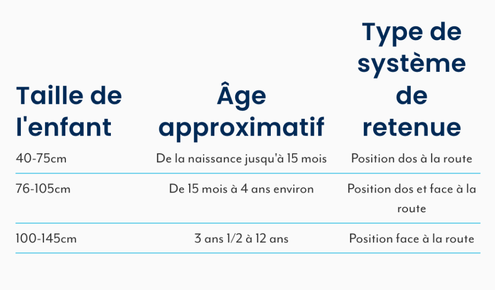 Consultez le tableau pour en savoir plus sur la taille et l'âge requis pour votre enfant.